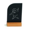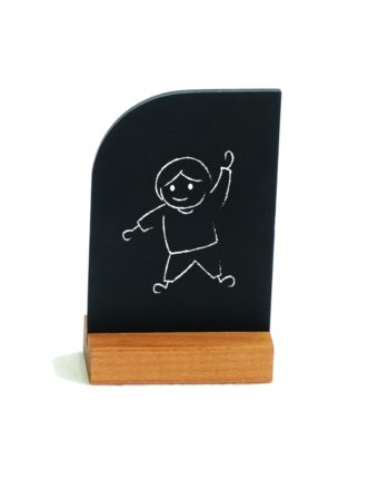 The base is made of oiled beech wood and supports a black board in PVC, shaped, ideal to communicate in creative way. The black surface is writable and erasable. Recommended to use liquid chalk markers.